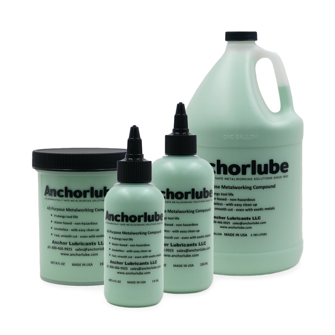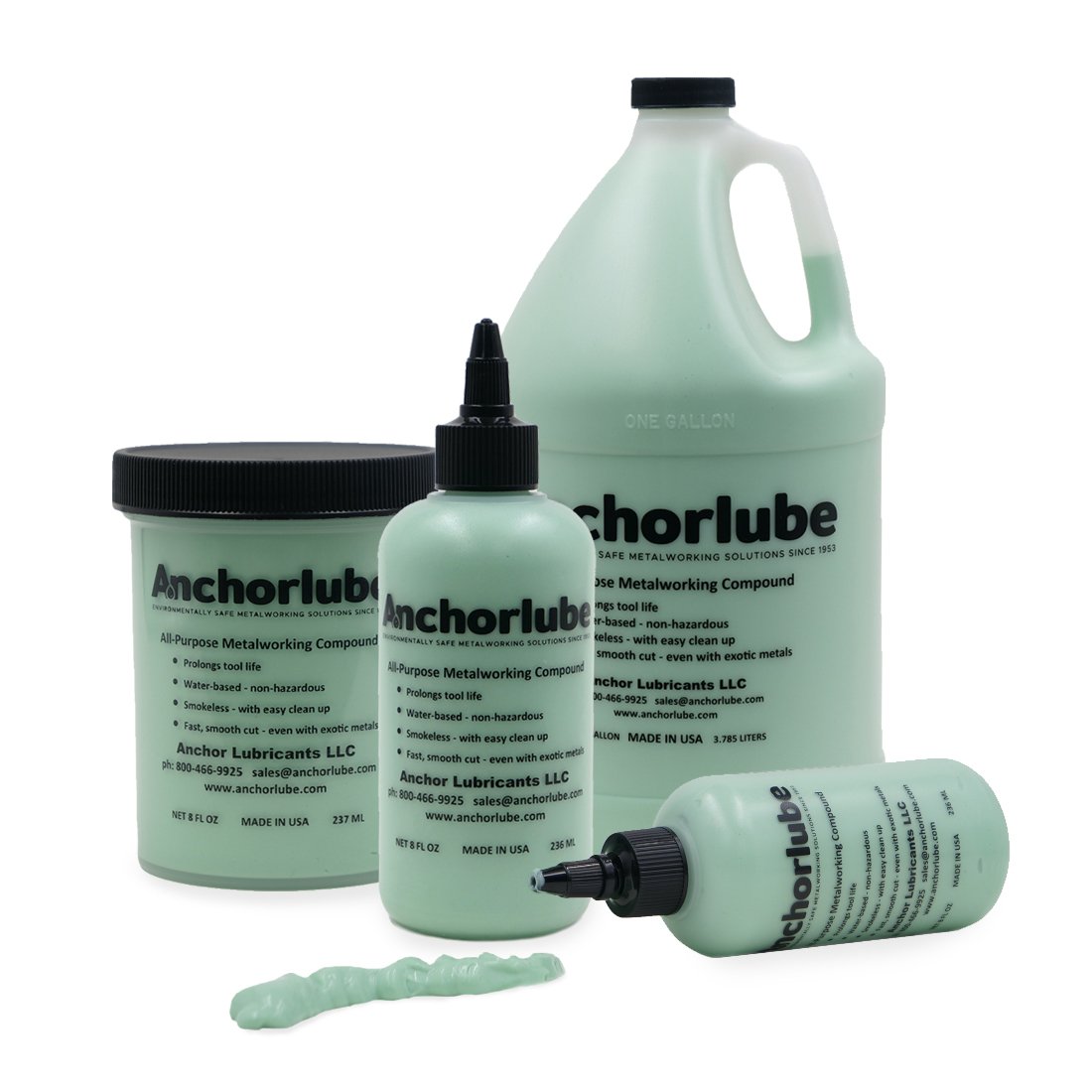 Anchorlube jest wodnym środkiem smarnym przeznaczonym do obróbki metali. Jest to wyjątkowo czysty smar nie zawierający azotanów, chromianów, rtęci ani związków na bazie formaldehydu. Spełnia normy EPA, ROHS i REACH, co oznacza, że nie zawiera żadnych niebezpiecznych ani toksycznych składników.